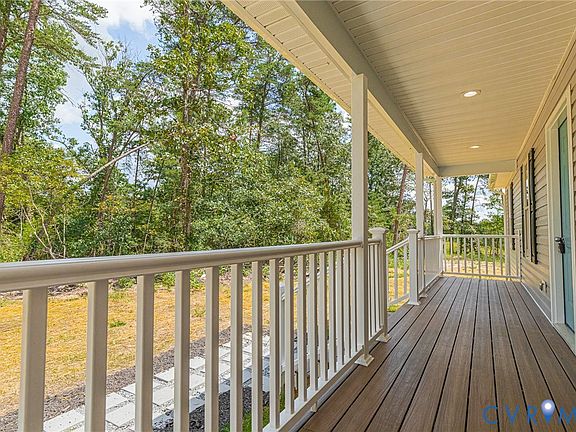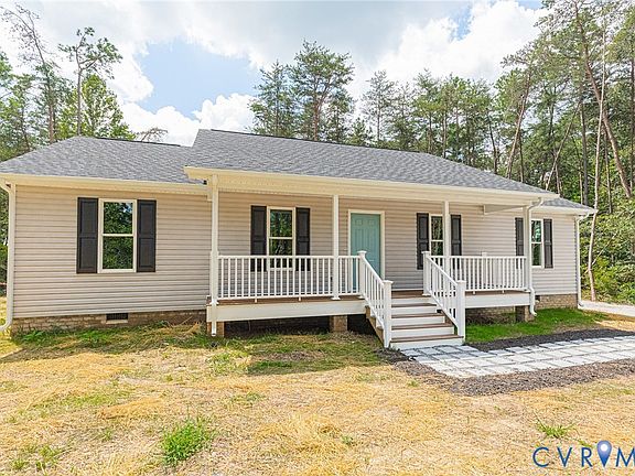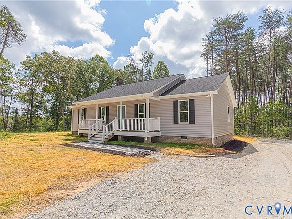 Step into this beautifully crafted new construction home, perfectly situated on 2 peaceful acres just 2 minutes from Route 360 and only 10 minutes from Central Garage. This stylish 3-bedroom, 2-bath home offers an open layout with luxury vinyl plank flooring throughout and abundant recessed can lighting to keep the space bright and welcoming. The kitchen is designed with both function and charm in mind, featuring quartz countertops, a farmhouse sink, painted soft close cabinets, stainless steel appliances, and a dedicated pantry. The primary suite offers a private retreat with an en suite bath including a custom tile shower and walk-in closet. Enjoy your mornings and evenings outside on the covered front porch with low-maintenance composite decking, or entertain on the rear deck overlooking the spacious, open backyard.