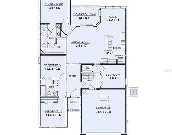 One or more photo(s) has been virtually staged. The Hillcrest floorplan is a spacious and thoughtfully designed one-story home that includes 4 bedrooms and 2 bathrooms, complemented by a two-car garage. This layout features a large great room at the heart of the home, seamlessly flowing into the dining area and kitchen for easy entertaining and family gatherings. The owner's suite is privately positioned and includes a walkin closet and an en-suite bathroom for added comfort. Three additional bedrooms share a full bath and are conveniently located on the opposite side of the home, offering a balanced layout. A covered patio extends the living space outdoors, ideal for relaxing or entertaining. With practical design elements and an open-concept layout, the Hillcrest floorplan combines functionality and comfort for a truly inviting home.