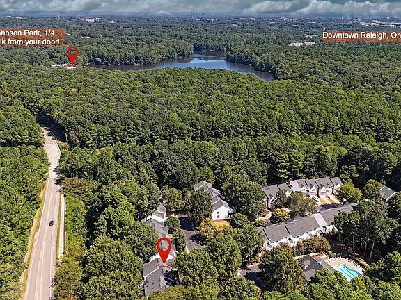 This freshly updated 2-bedroom, 2.5-bath townhome blends modern comfort with unbeatable convenience. Located just 12 minutes from downtown Raleigh or Cary and close to major highways, it's perfectly positioned for work and play. (SELLER IS OFFERING A $650 1-Year Home Warranty) Inside, you'll find brand-new carpeting throughout the home, paired with luxury vinyl plank flooring in the master bath, secondary bath, and laundry room. The kitchen and both upstairs bathrooms feature elegant quartz countertops, adding a cohesive, high-end touch to the living spaces. Stainless steel appliances, a tile backsplash, and an upgraded master bath round out the interior upgrades. Enjoy being directly across from the community pool house and just minutes from Lake Johnson State Park's scenic trails and water views. Whether you're relaxing at home or exploring the best of the Triangle, this townhome delivers comfort, style, and location in one smart package.
