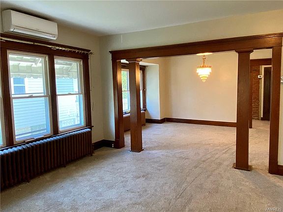 Beautifully maintained 3 bedroom, 1.5 bath single family home. Over 1600 sq ft of updated and original features such as gorgeous woodwork in the living/dining room with new carpet, tastefully updated full bath, eat-in kitchen, hardwood floors, back entry mudroom & laundry in basement. Enjoy time outside on the back patio with retractable awning in the spacious private back yard! Conveniently located near shopping and thruway. Pets okay with landlord approval and pet fee. Rental application required.