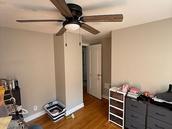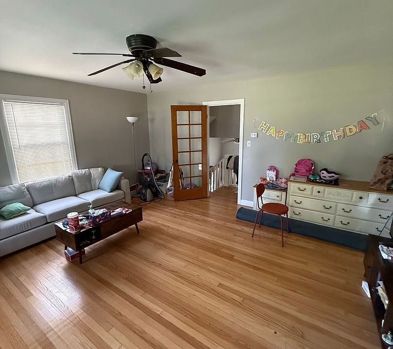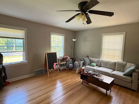 Inside, you'll find a bright and spacious living room with well-maintained wood floors that flow seamlessly into each of the bedrooms. Every bedroom is equipped with a ceiling fan and generous closet space, creating comfortable retreats for rest and relaxation. The kitchen is thoughtfully updated with luxury vinyl plank flooring, new cupboards, and stainless steel appliances, providing a modern and functional space for everyday cooking. The full bathroom features timeless tile flooring and a tiled surround, while an additional half bath adds extra convenience.