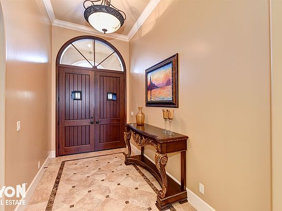 Stunning custom Mediterranean style home built in 2012 on 2/3 acre lot, ideally suited for fine living and entertaining. Over 3800 sq ft of luxury living, this single story hm boasts four bedrooms, four and one-half bathrooms, including a luxurious master suite. Meticulously designed open floor plan features a gourmet kitchen with top of the line appliances, large great rm with boxed beam ceiling, custom cabinetry, and family room with 16' folding doors that leads to a resort like backyard.