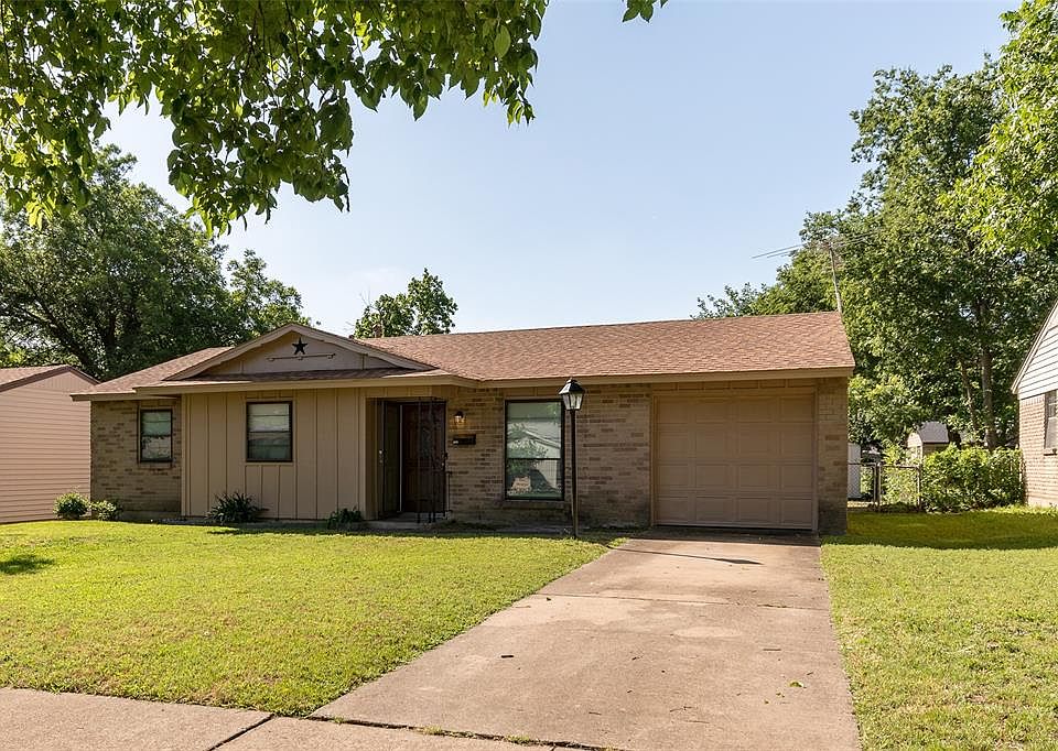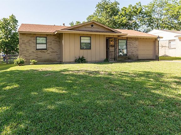 Adorable 3 bedroom home with attached garage located in an established neighborhood adjacent to Mountain View College. Large fenced back yard with 2 sheds! Beautiful covered patio! Great for barbecues! Wonderful starter home in Oak Cliff! It has upgrades in the bedrooms and a beautiful bathroom! There is crown molding and chair rail molding too! Granite top vanity in the bathroom with storage. Tile floors in the kitchen , bathroom, and utility room!Laminate floors in the living room and bedrooms! Mini blinds throughout! Ceiling fans in living room, all 3 bedrooms, and kitchen area. Will have new roof and lifetime foundation repair completed before closing! Kitchen appliances remain! Must see , it will go fast!