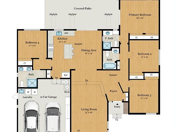 Cozy gas fireplaceBeautifully landscaped backyardStylish tile flooringPrivate guest suiteGrand skylightCustom cabinetryBright modern kitchen