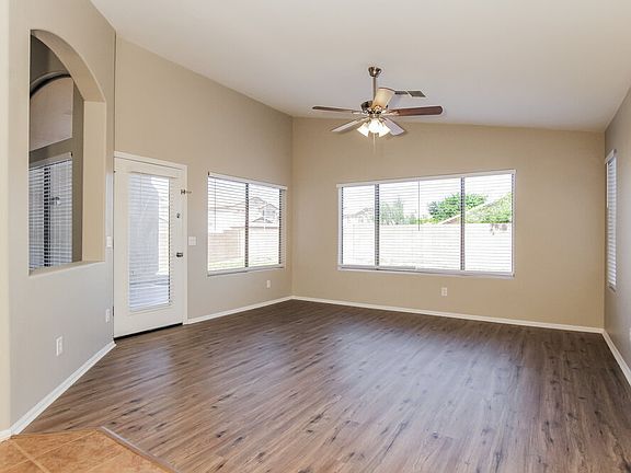 This comfortable Laveen rental home has three bedrooms and two bathrooms within 1,931 square feet. You'll love the house's big, bright windows and vaulted ceilings. The large dining room features a cooling ceiling fan and a door that opens to the covered patio. The island kitchen eases meal prep and cleanup with its stainless steel appliances, plentiful counter space, double sink with a gooseneck faucet, and proximity to the laundry room. You'll adore the main bedroom's size and the privacy of its en-suite. The private bath offers a walk-in shower, bathtub, dual-sink vanity, and walk-in closet. Apply for this rental home soon!