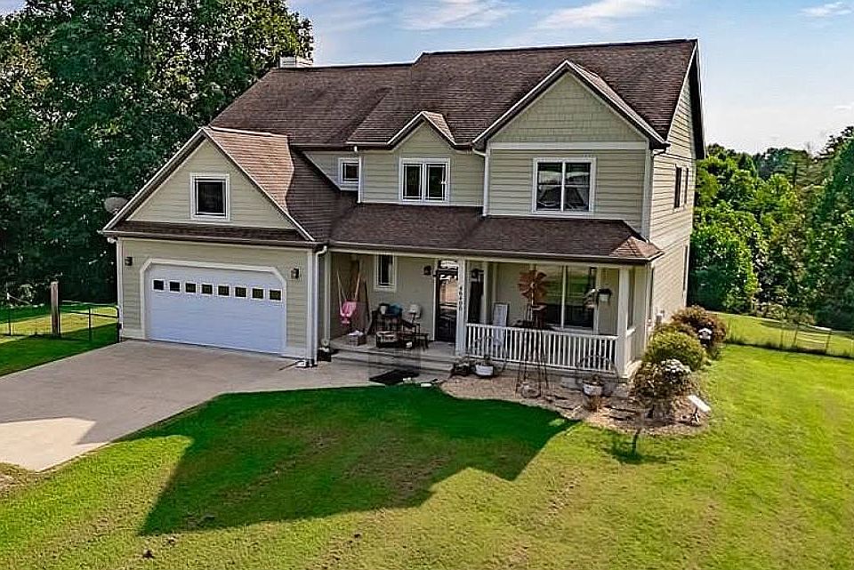 Custom built home on 40+ acres, private & secluded w/ a gated driveway off a state highway only 20-30 minutes from Gallipolis, Athens or Jackson. The long driveway leads to the almost 3900 sq ft home on top of your own hill. The house features 2 x 6 construction and high-quality materials inside and out. The first floor has 9-ft ceilings, tile floors in the two-story foyer, half bath and kitchen, and luxury water proof vinyl in the large family room. The kitchen is beyond beautiful with custom-made cherry cabinets, granite counter tops, and large walk in pantry. Built-in stainless appliances include dishwasher, range hood, 5 burner induction cook top, wall oven, warming and slow cook drawer and a microwave that also functions as a convection oven/steam cook combination. The kitchen has closet for cleaning supplies. French doors in the breakfast area open to the large covered back porch. Gunstock oak floors in the breakfast area, formal living and dining rooms with crown molding. Home has a partially finished basement set up to set up a kitchenette, another bathroom and could be used as another living area. Attached heated/cooled two car garage means you never have to brave the weather to get in your cars, also with WiFi controlled garage door. Brand new metal pole barn built in 2024 with car port attached. Fenced in pasture ready for your livestock. Two frost free water taps at the barn, electric ran to barn, has two industrial size garage doors with WiFi openers. Land also includes a 2023 singlewide trailer that currently has steady rental income. Come fall in love with this home just as we have and raise your family and farm animals in this beautiful home.