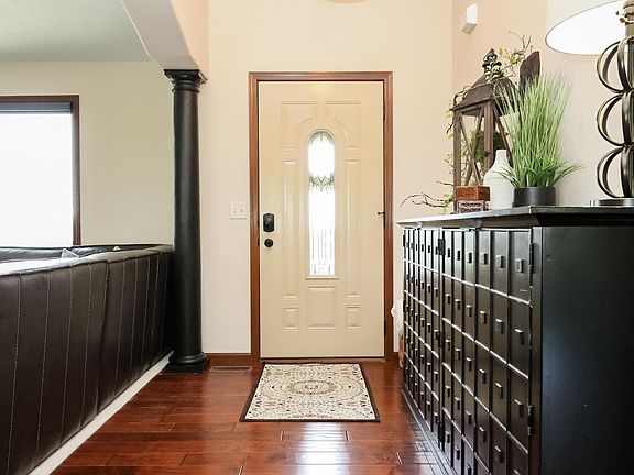 This stunning custom built home is waiting for you! The beautiful landscaping and gorgeous tree line offer privacy and protection. The brick and stone add a touch of elegance and is found throughout the exterior and interior of your home! The main floor space is beautifully appointed with rich hardwood floors on the main level. An oversized custom kitchen boast solid maple cabinets and custom brick work. The generous master retreat is beautiful! The lower level has a cozy custom brick fireplace! Entertain in the wet bar area! Outside you can enjoy peaceful evenings on the covered back deck! There is a 40 x 60 pole shed with a concrete floor for all of your extra storage!