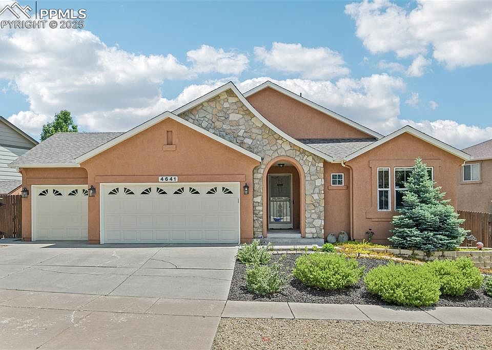 Welcome to this beautifully maintained rancher in the heart of Stetson Hills * Offering 4 bedrooms, 3 baths PLUS a Main level Office * Hard-to-find 3 CAR GARAGE * Hardwood floors * The kitchen features newer stainless steel ample cabinet space * Kitchen nook for casual dining plus bonus seating at the wrap around island * Welcoming Great Room with pretty fireplace * MAIN LEVEL PRIMARY SUITE includes a stunning updated 5 PIECE BATH with double vanity with granite countertop, center tower for exta storage space, and a soaking tub * Large walk-in closet in the Primary Suite * Versatile floorplan with a 2nd bedroom on the main level, plus another full bath * The GARDEN LEVEL BASEMENT brings in natural light and includes 2 more spacious bedrooms and a large Rec Room perfect for movies or game nights * Step outside to the newer TREX DECK (2020) and enjoy a large backyard with space to garden, play or entertain * Gorgeous landscaping with sprinklers and drip system * Storage shed, plus stamped concrete walkways and gates on both sieds of the fenced yard for easy access * Stucco exterior with pretty stone accents * Major systems have been upgraded with NEW CENTRAL A/C (2024) and a NEW FURNACE AND WATER HEATER (2022) * Oversized 3 car garage with epoxy floor and overhead storage * Conveniently located near Peterson Schriever and Fort Carson with easy access to shopping dining and parks * Completely move in ready!