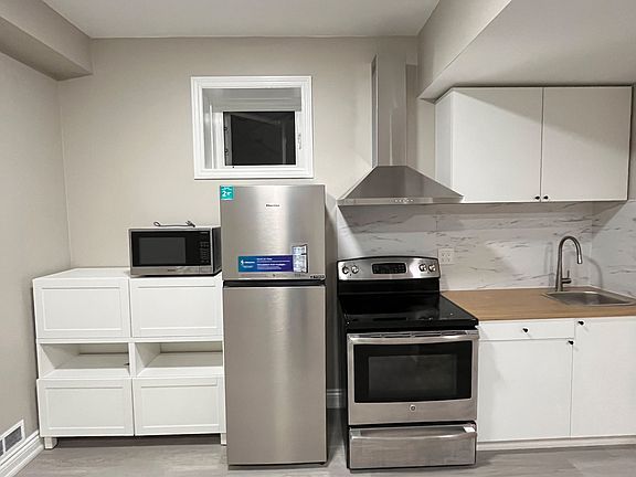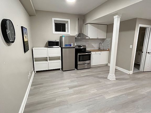 Prime location!! 9ft Ceiling basement with sound-insulated rooms! Separate entrance, laundry! Rare find suitable for a couple or a small family, close to all shopping and public transit, close to the library and walking distance to Dundas. All appliances and some furniture included in the rent. All appliances include Fridge, Stove, Microwave, Washer and Dryer, and One parking spot for the tenant in the driveway.Utility (water, heat, internet, etc), can be all included for 200