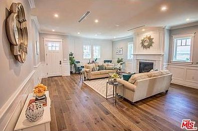 Stunning newly remodeled East Coast traditional home with a large Bonus room in prime Sherman Oaks location. Upon entering the foyer you can feel the quality & luxury all over. Inviting living room with fireplace opens to formal dining room. Chef's kitchen features center island, Caesar Stone counters, Jen Air stainless appliances and lovely breakfast area opening to back patio. Additional top-of-the-line features include distressed European oak wood floors, recess lighting, master suite including luxuriously bathroom with dual vanities, walk-in closet with custom built-ins and French doors open into an outside entertainers' backyard. Two bedrooms complete with built-ins and a large laundry room. Bonus room features elegant laminate flooring throughout with it's own 1/2 bathroom. Two car garage. Walking distance to Ventura Blvd, shops and restaurant.