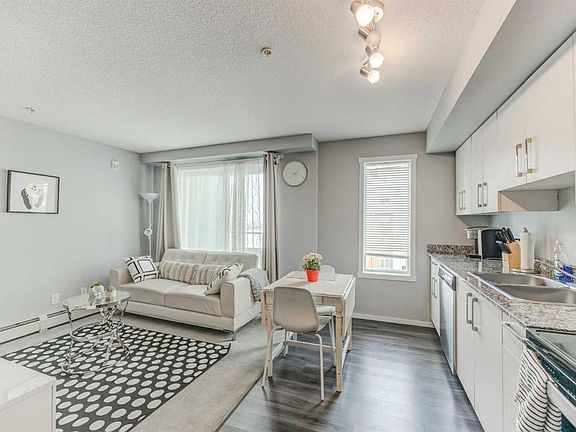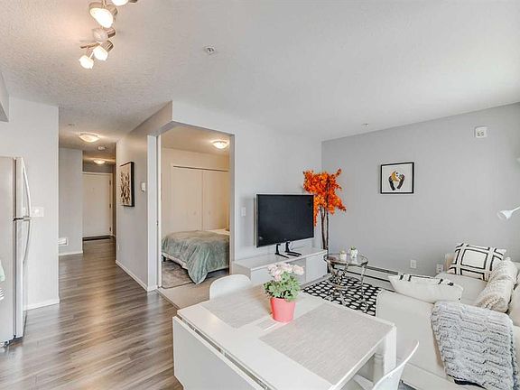Welcome to this well maintained, single-level apartment in the highly desirable Skyview community! This inviting unit features a spacious primary bedroom, perfect for relaxation, and a versatile second bedroom/den with sliding doors—ideal for a home office or guest room. The south facing modern kitchen comes fully equipped with updated appliances and abundant cabinet space, seamlessly flowing into the combined dining and living area—an excellent setting for both entertaining and everyday comfort. Step out onto your private balcony to enjoy morning coffee, unwind in the evening, or simply take in the fresh air. For your convenience, this unit includes a titled underground parking stall(#415), ensuring your vehicle's safety and security. Additional amenities include in-suite laundry, access to a well-equipped gym, and a party room for gatherings. Located close to major routes, public transit, schools, and various amenities, this home offers an unmatched lifestyle of ease and comfort. Don’t miss the chance to make this charming retreat yours—contact your favorite realtor today!