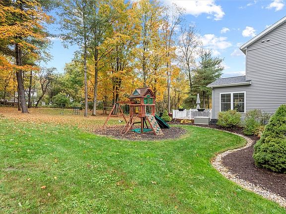 Outside, enjoy seamless indoor-outdoor entertaining with a deck that connects to a beautiful patio and custom stone fire pit. The private, professionally landscaped yard includes an extended lot, mature trees, and a striking rock wall, giving space to relax. The home also features a fully guttered exterior and a sealed, top-coated driveway.