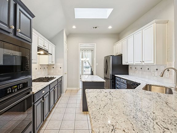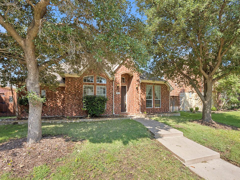 EAST FACING, 3 BEDROOM, 2 BATHROOM, BRICK HOME IN WEST FRISCO ONLY STEPS TO THE PARK + WASHER, DRYER, AND FRIDGE. One step through the East Facing front door and you will feel at home. Features include Wood Flooring, Fresh Paint, Garden Tub, Kitchen for a Chef with its high level Granite Counters, Blue Painted 42-inch Cabinets, Island, Included Refrigerator, Gas Cooktop, and Breakfast Bar...all Overlooking the Living Area with Vaulted Ceilings and natural light from the backyard. Out back, you can enjoy the weather year-round under a Covered Patio with TV while you walk on stamped concrete in your private Fenced Yard. 2 Car Attached Garage will also keep your items safe from any hail. Great layout with Split Bedrooms, and one room can be used as an Office. Only 3 houses from the greenbelt and walking path that leads to a Dog Park and Playground. Close to the Star, Tollway, and everything else that Frisco has to offer. Easy Approval process processed by a professional Company as you can tell by the photos and description so rest assured you will have a great experience here. This home is available for immediate move-in and easy to apply for by scanning the QR code in the last photo or in the house. Pets allowed Minimum 1 year, prefer at least 18 months