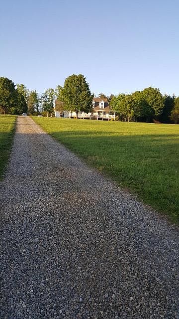 Lovely Cape Cod Style home with full wrap around poach and cement patio across rear of home. Gas fireplace, 2 BR upstairs with full bath and sitting room with window overlooking extremely level back yard. 24 x 56 covered shed with enclosed space. RV Parking, Creek access and under-ground spring on property. 6.5 acres, over 3 acres cleared & extremely level. Beautiful medium oak hardwood floors, ceramic tile, large vinyl windows with solar window tint and energy saving/fade resistant solar shades throughout, french doors off dining room, ceiling fans in every room, large master bath with stand alone shower and full bathtub, dressing area with double vanity and large walk in closet. Upstairs bedrooms have new neutral carpet with double closets in both bedrooms and full bath with tub and shower. Cement parking.