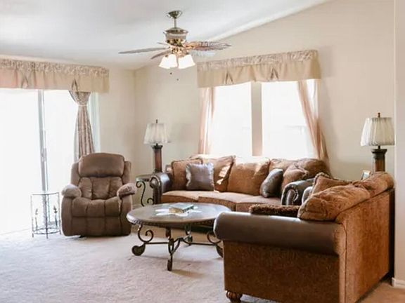 This custom Cavco home has lots of upgrades! Covered front patio with French doors w/ side lights as you enter. Kitchen has stainless steel appliances, breakfast bar, pantry and walnut cupboards. Wood burning fireplace in the family room, built in entertainment center and also a sliding door leading to the large covered back patio. Main bed/bath suite has a jet garden tub, separate shower and large walk-in closet! Large lot with great views at a great price. RV hookup!