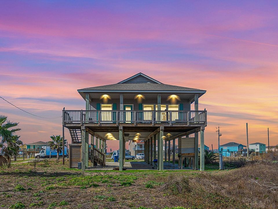 Experience coastal living at its finest in this breathtaking 4-bedroom, perfectly situated to capture the essence of beachfront luxury. Nestled in the sought-after San Louis Beach, just a mile east of Surfside Beach, this home is a sanctuary of style and comfort. Step into an entertainer's oasis where open-concept design seamlessly melds living, kitchen, and dining spaces. Vaulted ceilings, recessed lighting, and stylish vinyl plank flooring adorn common areas, creating an ambiance of sophistication. The living room, adorned with expansive windows, offers a mesmerizing panorama of the beach. The gourmet kitchen is a culinary delight, featuring breakfast bar with pendant lighting, granite counters, stainless appliances, and subway tile backsplash. Three of the four bedrooms boast en suite bathrooms, one with dual sinks. Outside, a spacious deck awaits, providing a front-row seat to the beauty of the beach. Embrace a coastal lifestyle where luxury meets the soothing rhythm of the waves.