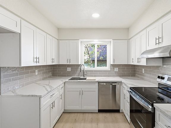 Beautifully renovated 3BD/2BA home on a quiet cul-de-sac! Features 1,200 sq. ft. with a new kitchen boasting white shaker soft-close cabinets, quartz counters, and stainless steel appliances. New flooring, windows, doors, trim, paint, lighting, and bath vanities throughout. Exterior upgrades include new gutters and garage door plus eye-catching green-and-white curb appeal. Daylight basement ready to finish as a workshop, office, or extra living space. Backs to a peaceful, tree-lined lot—close to stores, schools, and more. Move-in ready—see it today!
