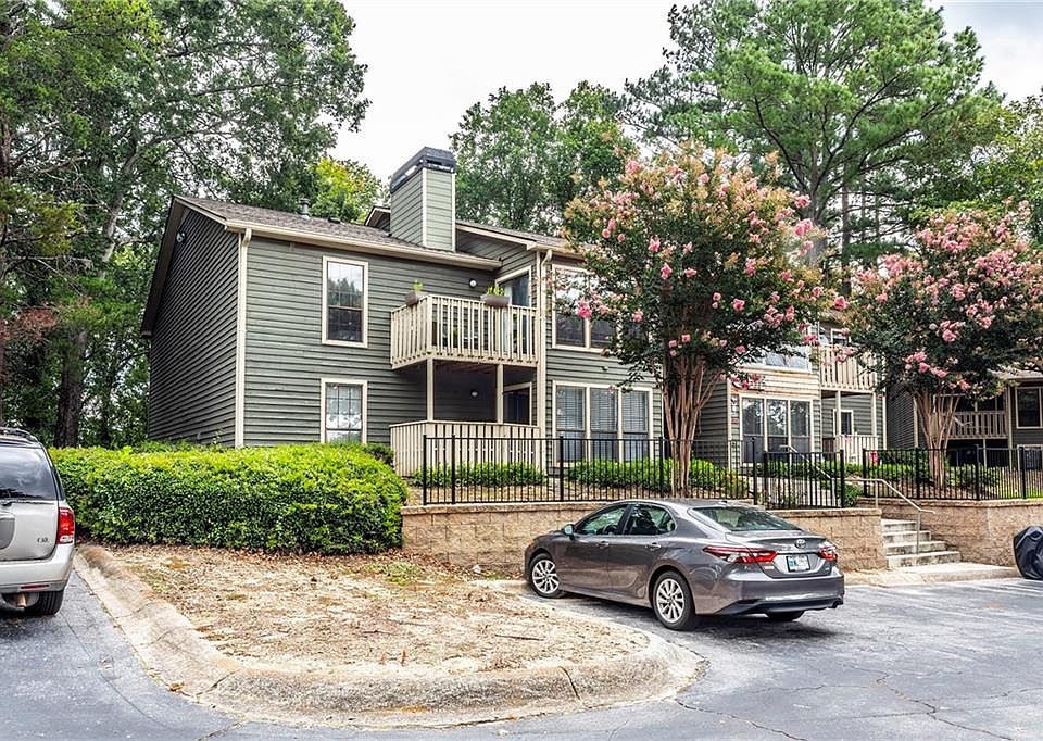 Job transfer means a broken heart for the seller and an opportunity for the buyer. Darling Vinings condo in gated community minutes (literally) to I-285 and the city, but Cobb County taxes and amenities. This community is a hidden gem in the heart of Vinings, near restaurants, shopping and with good access to Truist Park. The community offers swim, tennis, and your private exercise salon! Plus, plenty of pet-friendly walking space. This unit is tucked back in the complex, right where you want it. New upscale gas stove, new clothes dryer, smart lighting, new plantation blinds, innovative coffee bar, and new gas logs in a stylish black accented fireplace flanked by updated shelves! So many little details have been attended to, including new shower heads, new ceiling fans, etc. The master bedroom features a walk-in closet. Choice upper level location for security and quiet privacy. Note the coffee bar area (which could also be an office or dining room), the sun-flooded Florida room, and even a deck for breezy outdoor dining. The gate operates 24 hours a day and only permits one vehicle to enter at a time for added security.