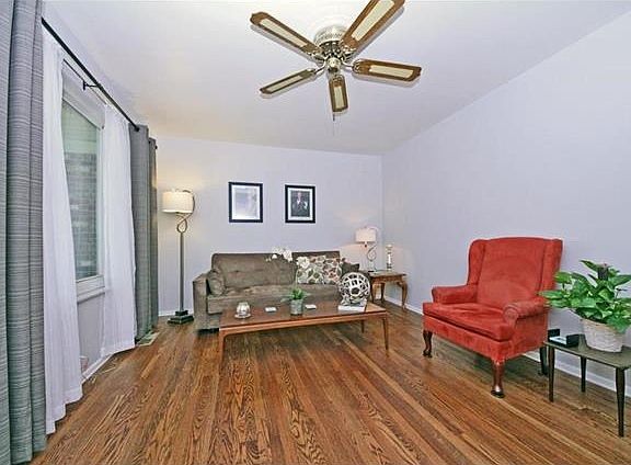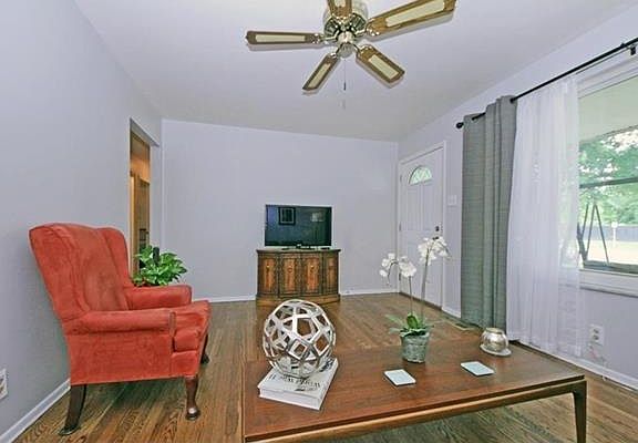 Sharp, all brick ranch with curb appeal to spare! Attractive front porch area is tidy and welcoming,setting the tone for this three bedroom charmer.Freshly painted interior sparkles- large windows create lots of natural light, the pretty hardwood throughout shines! Trim and doors are a gleaming white, setting off the mellow contemporary colors.The heart of any home,this updated eat-in kitchen offers a big breakfast bar with extra storage as well as plenty of custom cabinetry.Opening to the spacious breakfast room, have a meal or coffee while enjoying the outdoor view from the three large windows.There's also a separate dining room providing even more space for entertaining or larger family gatherings! The master bedroom is a quiet retreat with double closets, and refurbished private bath. Two more bedrooms and a full bath are on the main level.The walkout basement offers more space and has a walkout to the fully fenced level yard. A carefully maintained home in move in condition!
