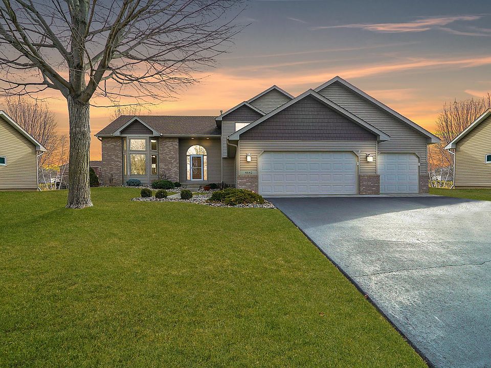 Step into a home where cozy meets spacious, with a warm, inviting lower level featuring a stone fireplace and plenty of room for entertaining. The airy high ceilings and large windows of the living room create a bright, welcoming atmosphere, leading you to a game room with a classic pool table and vintage jukebox adding a touch of nostalgia. This charming home also boasts a convenient utility shed for extra storage. The heart of the home is the upgraded kitchen with rich cherry cabinetry and sleek stone countertops, complemented by a convenient eat-in island. Unwind in the tranquil primary bedroom with plush carpeting and ample natural light, promising a serene retreat. This home is a harmonious blend of comfort and leisure, offering well-appointed spaces for both lively gatherings and peaceful relaxation.
