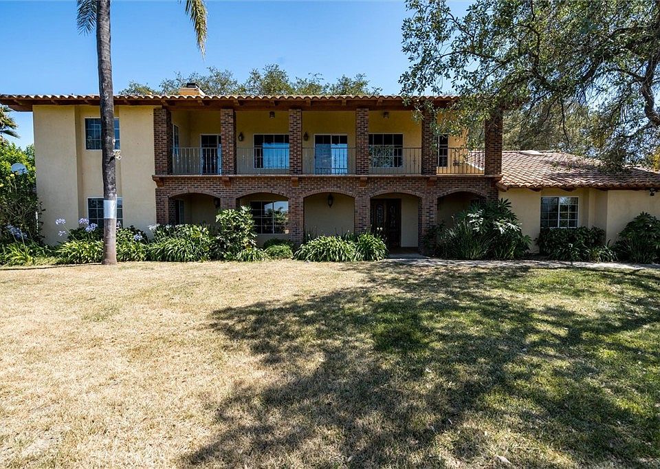 Welcome to your serene retreat in the exclusive De Luz area with NO HOA. This custom-built 4BR/3BA 4,393 square foot estate on 6.86 acres, set on expansive private grounds, offers stunning views and spacious living. While the property has immense potential, it does need some work. The estate features a private gate and a long driveway, ensuring privacy. Inside, you'll find charming oak-beamed ceilings, custom built-ins, and four wood-burning fireplaces. Floor-to-ceiling windows flood the home with natural light and offer beautiful views from every angle. The kitchen includes granite countertops, a designer stone backsplash, stainless steel appliances, and a dining area with direct access to the expansive backyard. A grand formal living room exudes sophistication, while the family room, with its stone-accented fireplace and panoramic windows, invites relaxation. Three spacious bedrooms on the main floor provide ease and comfort, with two sharing a Jack and Jill bathroom and one with a private ensuite. Upstairs, the primary retreat includes an office with captivating views, a bedroom with a marble-accented fireplace, a private balcony, and a spa-like bathroom with dual vanities. Functional extras include a large laundry/mudroom with a sink and ample storage, a spacious workshop/detached garage about 32x25, sports court and owned solar panels to keep energy costs low. This De Luz estate blends potential with privacy, offering beautiful views from every room. With some work, it can become your perfect retreat, just minutes away from Old Town and I-15, award-winning schools, wineries, shopping, dining, and entertainment in Temecula Valley. Embrace the opportunity to transform this property into your private paradise.