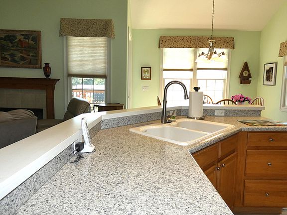 This condo offers a wonderful contemporary feel with vaulted ceilings in the great room and kitchen area. Gas fireplace is the focal point of the living room, adding a cozy feel year round. The kitchen has a large island with lots of counter space for those special meals and tons of storage. There is a separate dining area overlooking the back deck and open space. Primary bedroom and second bedroom are spacious with large closets. Main floor laundry area is just inside the back door. The basement offers a nice finished area for a rec room, office or craft area. Remainder of the basement is open with lots of storage and a workshop space.