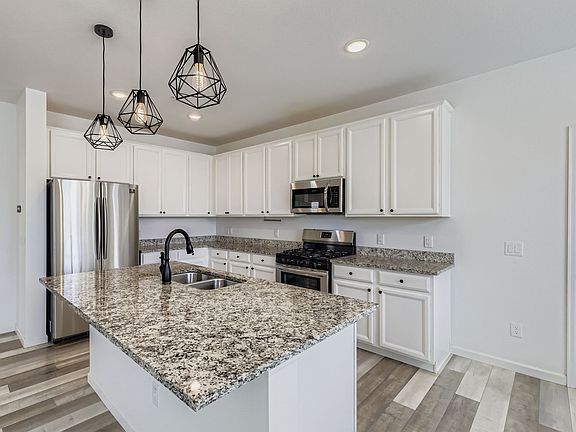 Private patioStainless steel appliancesGranite countersSpacious laundry roomLight and bright kitchenGenerous kitchen cabinet spacesOversized island
