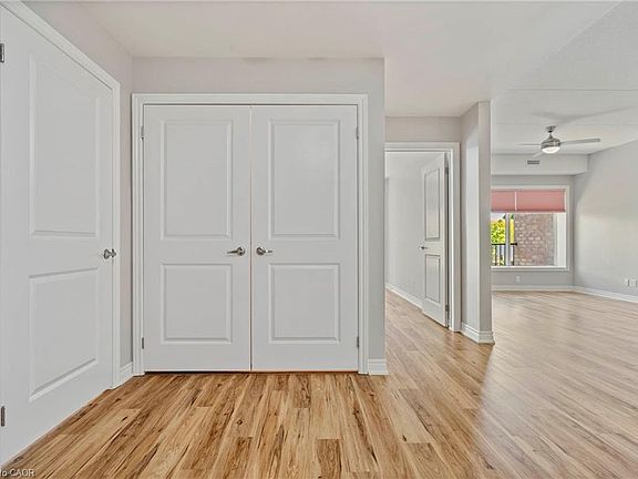 One of the only South-Facing Courtyard view units available. Have you been wanting to right-size but didn't want to give up the conveniences of a house? Welcome to easy, elegant living in this beautifully maintained south-facing condo, nestled in a sought-after adult-centred community in Niagara Falls. Offering all the comforts of a traditional home, without the upkeep, this spacious 1,185 square foot residence features your own private garage. This isn't just a parking spot-it's a secure garage that you own, plus an exclusive additional surface parking space and a personal storage locker. This suite is like no other in the building! Status Certificate available upon request. Freshly painted and overlooking the heated saltwater pool, the condo offers serene privacy with views framed by a mature ornamental pear tree. Inside, you'll find a warm, welcoming space finished with over $15,000.00 in upgrades. The custom upgraded Stone Natural Wood flooring in Pawnee Pecan, known for its style, comfort, and durability. The kitchen and both bathroom vanities are upgraded and fitted with Rev-A-Shelf wire pull-out organizers, while elegant tile backsplashes add a refined touch. Additional upgrades include wired-in motion-sensor closet lighting, Levolor Premium Top-Down Bottom-Up cordless blackout shades, and a steel garage door with a deadbolt for added peace of mind. You'll also enjoy granite countertops, full-sized in-suite laundry, and thoughtfully designed closet organizers that maximize functionality. All of this is set within a vibrant, friendly community that offers a community garden, a fully equipped exercise room, and a cozy building parlour perfect for socializing. Whether you're relaxing poolside or entertaining guests, this is low-maintenance retirement living at its finest.