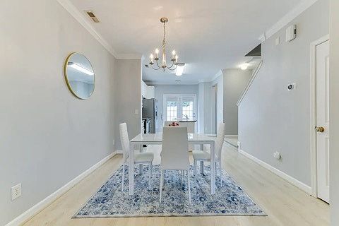 Gas fireplaceVaulted ceilingsCrown moldingSeparate dining area