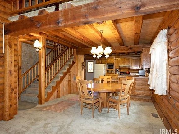 Welcome to 4645 E Lampkins Ridge Rd, a truly unique opportunity to own a piece of Bloomington’s countryside charm. This log cabin home, built in 1981, has never been lived in, offering a blank canvas for those with a vision to bring its timeless character to life. Tucked away on 8 gorgeous acres, the property offers privacy and natural beauty, yet remains conveniently located with rear access to Gentry East subdivision, blending country seclusion with in-town convenience. Whether you're looking for a quiet personal retreat or a property with development potential, this setting is something special. The main home features warm wood tones, a classic stone fireplace at the heart of the living area, and an unfinished basement with a built-in garage—ready for your custom touches. Outside, the land is open and gently rolling, perfect for exploring, gardening, or simply enjoying the peace and quiet. In addition to the primary home, there's an additional house on the property, along with a detached garage—both offering excellent renovation potential for guest space, income property, or a workshop. With its rare combination of character, acreage, and location, 4645 E Lampkins Ridge Rd is a once-in-a-lifetime opportunity you won’t want to miss.