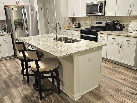 The gourmet kitchen comes fully equipped with stainless steel appliances, perfect for cooking and entertaining. Relax in the large master suite with a scenic view, complete with a full bath, dual vanity sinks, and a walk-in shower.