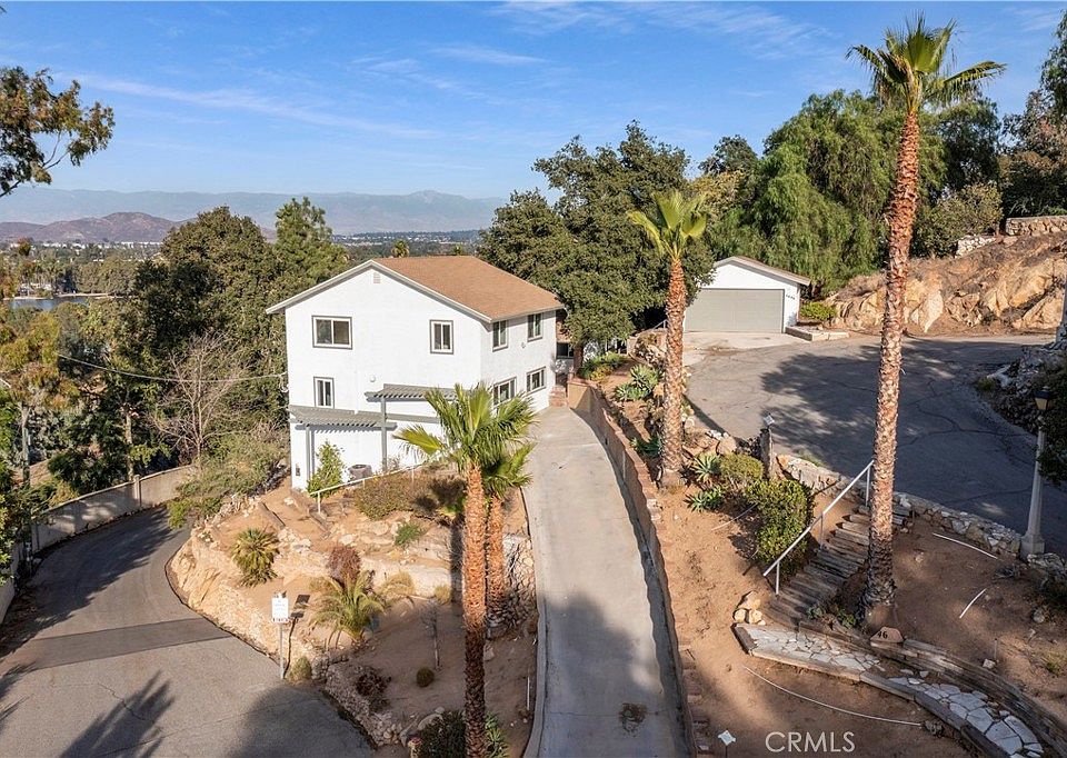 Elevated high above the city lights, this amazing home personifies a prestigious and stately presence. Located near the heart of downtown and minutes from the historic Mission Inn and legendary Mount Rubidoux, the distinguished home can be accessed along a secluded drive to the top of Beacon Way. Upon entry your eyes will feast upon the architectural accents featuring arches throughout the home's interior and serene views radiating from large, picturesque windows. Bamboo hardwood flooring and a brick fireplace impart warmth and character to the comfortable living room. The newly remodeled bright and airy kitchen features white cabinetry, quartz counters, a 5-burner gas cooktop and recessed lighting. An adjacent dining area opens to the main deck creating the perfect indoor/outdoor dining experience. The spacious Owner's Suite resides on the upper level with room for a sitting area and an en-suite bath with updated vanity. Four generously sized bedrooms, two full baths and laundry room are located on the upper and mid-levels. Unwind and relax in the lower-level entertainment space with a vintage tiled wet bar, laminate plank flooring, half-bath, access to the lower-level deck and filled with opportunity to leave a personalized impression on the space. Additional property highlights include a detached garage with separate driveway, new furnace, double pane windows, ceiling fans, ring doorbell, terraced landscape with stack stone retaining walls and newly painted interior/exterior. Ascend to new heights with this one-of-a-kind remarkable home and embrace the view.