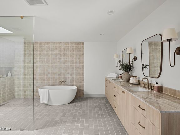 A stunning reimagining of modern Spanish architecture, this 4 bed, 4.5 bath residence is perfectly positioned on a rare, resort-style lot with mountain views front and back, just two streets from Paradise Valley and backing directly to the Phoenix Mountain Preserve trail. Spanning 4,170 sq ft, the home embodies timeless sophistication with rich natural textures, warm finishes, and curated details throughout. Inviting living spaces flow effortlessly to the outdoors, creating an ideal setting for elevated desert living. The owner's suite is a private sanctuary with serene views and refined finishes, while lush landscaping, mature mesquite trees, and a sparkling heated pool complete this one-of-a-kind retreat that captures the essence of modern luxury in the heart of the desert.