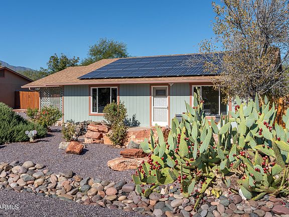 Discover the perfect blend of comfort, upgrades, and affordability in this charming move-in ready 3bd/2ba home! Enjoy peace of mind with a new roof (2020), a beautifully remodeled kitchen (2023), and fresh paint, gutters, and flooring added in 2025. Energy savings come easy with a low-payment solar lease and APS credits. The property also features a versatile enclosed area with a concrete slab and electricity, plus an additional storage shed. With NO HOA, no rental restrictions, room for RV parking, and a central location ideal for commuting throughout Sedona and the Verde Valley, this home is ready to fit your lifestyle—whether it's your first home, retirement retreat, or next investment. Put 4646 Verde View at the top of your list!