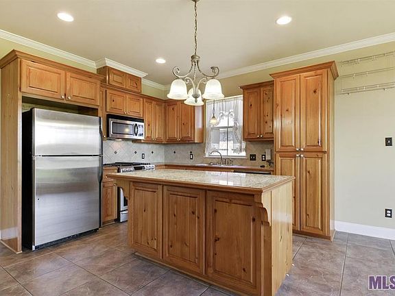 3 BR, 2 BA Gorgeous, custom built, home located on the pond with new bulkhead and backyard completely rail fenced--wood fence on side of home. The covered patio area with ceiling fans for ultimate comfort offers total relaxation overlooking the pond and lighted fountain in the evenings. Fruit tree--satsuma located in backyard. Absolutely beautiful. Kitchen features gas range, refrigerator, microwave, disposal and dishwasher. Flooring consists of oak flooring in the living room, seller installing new carpet in all 3 bedrooms, and ceramic tile in all wet areas. Washer and dryer to remain, too. All blinds, curtains and rods to remain. Computer nook with cypress cabinets and desktop. 2-car attached, large, garage measuring 550 sq. ft. Storage area inside of the garage--freezer and tools to remain. This home has a new BULKHEAD that was installed by Falcon construction. This home is a must see and is turn key ready for the perfect buyer. Brusly School District conveniently located near retail, commercial and chemical industry corridor for stress free commutes.