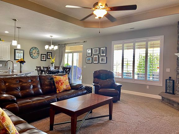 Craftsman style home in The Meadows at Stucki Farms. New dishwasher, disposal, water heater, concrete pad in back w/ pergola and wired for hot tub. Brick fireplace, upgraded features, insulated garage doors, epoxy garage flooring, master on opposite side of home from guest bedrooms, covered patio, walk in closet in maser and separate shower/tub.