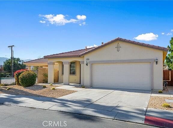 Come see this beautiful single story home located in a secure gated community close to local shops, schools, and the 10 freeway. This gorgeous home has the perfect layout. As you enter you are greeted by a large fireplace which will be useful during those cold winter nights. There is a large open kitchen with a center island and stainless steel appliances: stove/range, dishwasher, & microwave. There is a covered patio area off to the side of the kitchen, perfect for morning coffee. This home has so much to offer and is located steps from the community Pool, Spa and BBQ area. Don't miss out, this home is priced to sell and will not last.