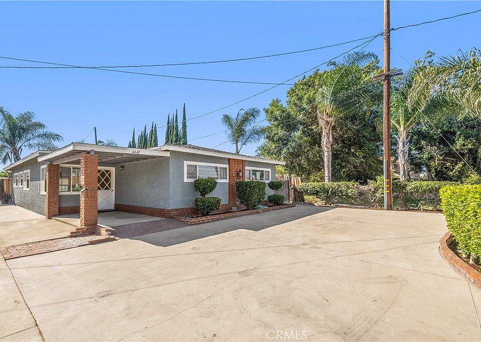 First time on the market, this updated El Monte Home can now be yours! Sitting behind privacy hedges this single-level home has been recently updated with new flooring, new carpet in the bedrooms, and freshly painted throughout. This home has a family room, a dining area off the kitchen, and a living room with a fireplace. This home has 4 bedrooms with an option of easily using one of the bedrooms as a home office. The bathrooms are both beautifully updated, one with a shower/bathtub combination and the other with a large shower. The kitchen features granite countertops, and is spacious, perfect for entertaining! This home features a two-car garage with laundry hookups. A large concrete driveway provides parking for multiple cars and possibly an RV. A private gated backyard is ready to design your dream backyard or build an ADU (Check with the city). Recent upgrades include a new roof, a new HVAC unit, and newer windows. This home is within minutes of the 605 and 10 freeways, close to schools, banks, parks, and shopping. Welcome Home!