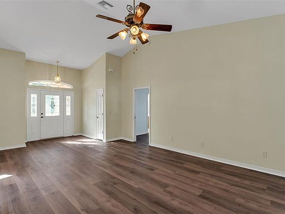 One or more photo(s) has been virtually staged. Welcome to this move-in ready 3 bedroom, 2 bathroom home located on a desirable corner lot in Autumn Ridge Subdivision. Step inside and immediately notice the new luxury vinyl plank flooring and fresh interior paint that give the home a modern, inviting feel. The spacious primary suite offers a private retreat with an ensuite bathroom featuring dual vanities, a garden tub, walk-in shower, and large walk-in closet. Just off the primary suite is a versatile living room/sitting area, perfect for relaxation or a home office. The open floor plan is ideal for entertaining, with the kitchen overlooking the family room. The kitchen boasts stainless steel appliances, a built-in pantry, a center island for meal prep, and a separate island with seating. Two additional bedrooms of equal size are thoughtfully positioned on the opposite side of the home, sharing a full bathroom for convenience. Enjoy outdoor living on the screened-in patio just off the kitchen—perfect for morning coffee or evening gatherings. Recent upgrades include a new roof (2023), new HVAC system (2023), and new luxury vinyl plank flooring throughout. Conveniently located near shopping, dining, and everyday amenities, this home combines comfort, style, and functionality. Call today to schedule your private showing!