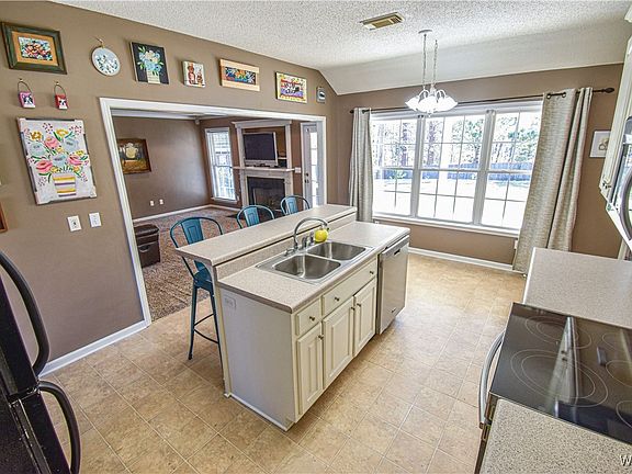 Discover this charming one-level home situated on a large lot with a highly desirable open floor plan. Enjoy effortless flow between the the kitchen, bar seating, and the separate formal dining room—all filled with an abundance of natural light. The spacious primary bedroom features a large walk-in closet, while the primary bathroom has dual sinks, a jetted tub, and a walk-in shower. Step outside to a generous flat backyard that is great for gatherings, play, or relaxation. The property backs up to stunning seasonal foliage, creating a serene and picturesque backdrop. A perfectly placed storm shelter offers added peace of mind. Enjoy a short stroll to the neighborhood lake. Homes like this don’t come along often—call today to schedule your showing!