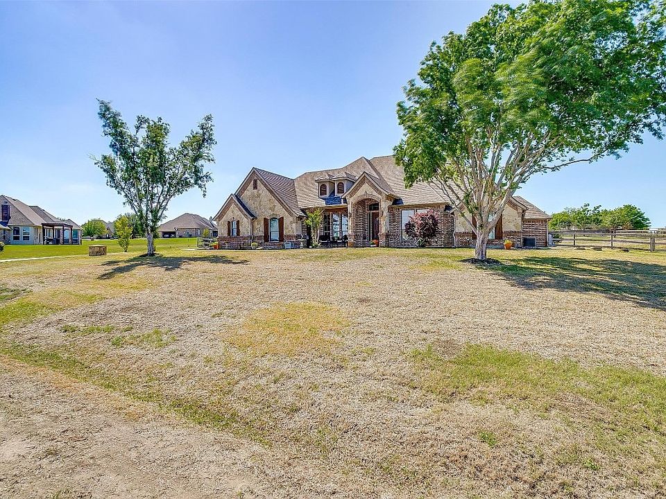This beautiful home sits on a fenced one acre lot in the desirable Mustang Creek neighborhood. You are a short drive to shopping, dining, parks and major highways! Once you walk through the front door you will find a formal entry that leads you into an open concept kitchen and living area. The chef's kitchen offers a bar height counter and an island for plenty of space to meal prep. The split master has a beautiful en suite with separate vanities, jetted tub and walk in shower that feels like a spa! Each secondary bedroom provides a large closet for plenty of storage. You'll find either a second master suite upstairs including a full bath and walk in closet or use this huge space for a media or game room! If all of the indoor space isn't enough, once you step outside you will find a covered patio to host your friends and family for outdoor events! There is plenty of space to build a custom pool and a shop! The details in this home are beautiful!