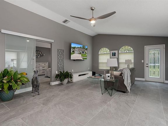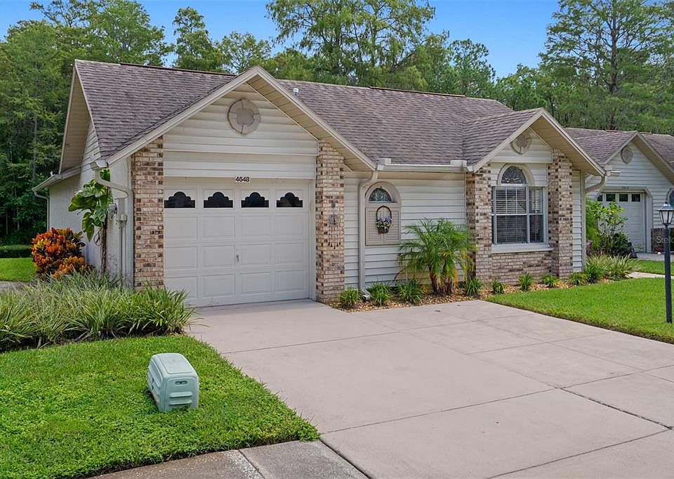 Welcome to this absolutely beautiful and meticulously upgraded home in the highly sought-after, maintenance-free 55+ community of Heritage Lakes. This pristine, move-in-ready home offers a rare opportunity to experience luxury living, with no detail overlooked. The home boasts an inviting a newer brick paver deck, expanded driveway and professional landscaping with exterior lighting. The oversized tile flooring throughout, giving it a clean, modern aesthetic. The spacious master suite is a true retreat, featuring a spa-like bathroom with dual vanities and gleaming granite countertops. The master bedroom also includes a large walk-in closet, providing ample storage space. The gourmet kitchen is a chef’s dream with upgraded granite countertops and plenty of storage for all your culinary needs. Perfect for hosting guests, the open-concept design ensures effortless entertaining. Heritage Lakes offers an active, vibrant lifestyle with access to a range of amenities, including a clubhouse, a sparkling pool, a fitness center, and a calendar full of social activities. Plus, with its prime location close to shopping, highways, and restaurants, everything you need is just a stone’s throw away. This home truly has it all—luxury, convenience, and the perfect setting to unwind and enjoy your best years yet.