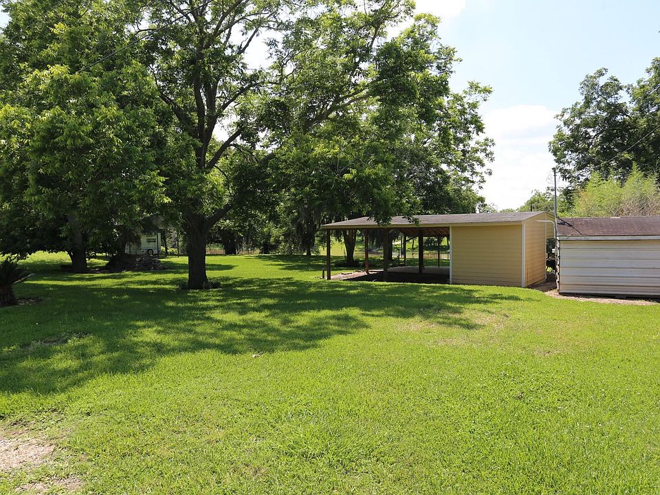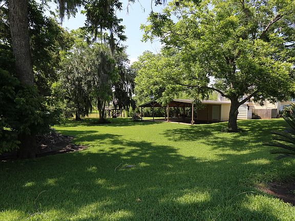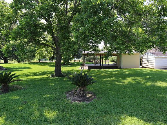 Great blank canvass opportunity. This fantastic property is 2 conjoined lots and sits with 120 feet of bulk headed river front and has a deck with an amazing live oak tree shading next to the boat house with lift. perfect for a boat and rv can be redone with boat ramp added. Covered carport with Storage, an amazing huge travertine patio. Build a home, modify existing or just park your boat and rv for weekend getaways. 4 huge pecans, crepe myrtles, the live oak and a very nicely maintained and manicured lawn await. Fantastic views, fishing, crabbing and of course boating in the San Bernard, your front door. Don't wait they aren't making anymore waterfront!