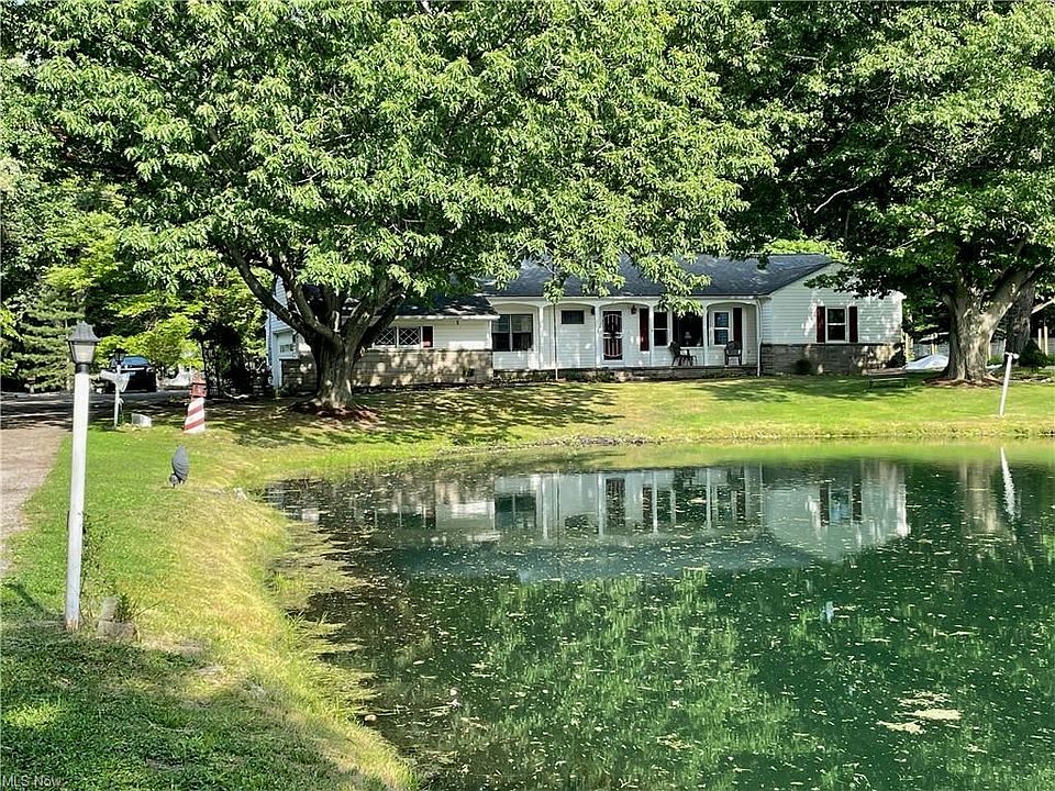 Charming 2300 sf ranch home situated on a park like 1.5 acre property with its own stocked Lake. Fantastic Great Rm addition in 2007 features vaulted ceiling's, a gas fireplace & loads of storage closets opens to a large breezeway that leads to the garage. Nice updated kitchen with granite countertops, ceramic tile backsplash and SS appliances. Large living room with Wood burning fireplace opens to the dining room both of which have oak hardwood floors that flow throughout. Three bedrooms including a nice sized master bedroom with its own private bath. Lower level has a huge recreation room with a bar and newer LVT floors, wood paneled walls and wood burning. Large storage room plus a workshop. Oversized 2 car garage, beautiful backyard with 20X10 shed and nature lovers wooded serene setting! This home is centrally located in the heart of Orange Village right across from the park! Truly a fantastic solid homewith loads of potential on an amazing Lot! Make an offer today Bc this will not last long!