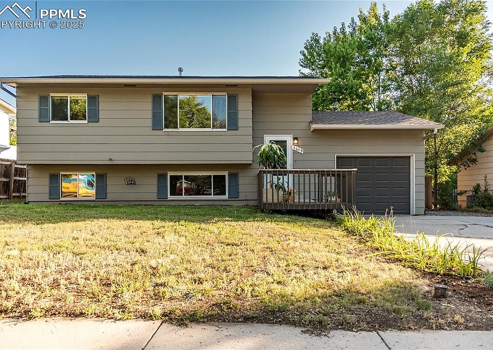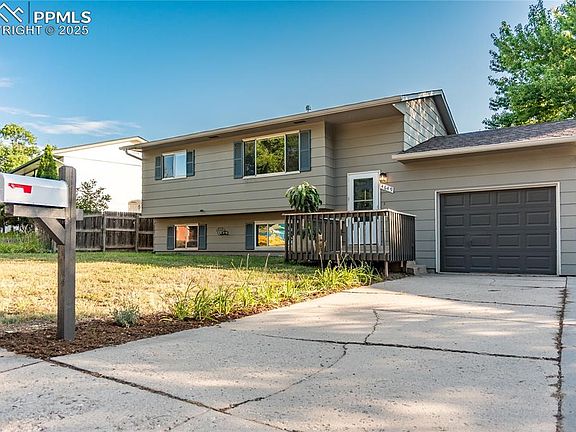 Welcome to this charming 4 bedroom, 2 bath home in Northeast Colorado Springs. With a classic bilevel layout, an attached garage, and a spacious backyard, this home offers comfort, functionality and loads of light! The upper level features two bedrooms and a full bath, along with the living room, dining area, and kitchen. From the dining space, step out onto the deck, a favorite spot year round. In winter, it stays sunny and warm, and in summer a large backyard tree provides plenty of shade. The xeriscaped yard and paver patio add low maintenance appeal and extra room for entertaining. The lower level includes a large family room, two additional bedrooms, one of which is non conforming, a three quarter bath, and a laundry area. The washer and dryer are included. The neighborhood enhances lifestyle with walking and biking paths, nearby parks, and playgrounds. It is a friendly community that is easy to enjoy whether you are out for a stroll or a ride. Convenience is another plus: Rizuto’s Ice Cream Shop is within walking distance, schools are nearby, and Palmer Park, Costco, and shopping along Powers and Academy are just minutes away. Come visit this welcoming home in a location that blends comfort, community, and convenience.