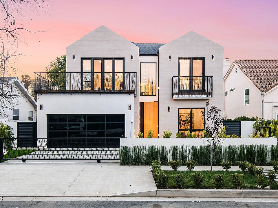 Stunning brand new construction featuring European Modern Architecture in the heart of Sherman Oaks! As the tallest house on the block, this home makes a statement with its impressive stone cladded finish and custom ironwork gates.Upon entry, you are greeted by a custom wood and steel pivot door leading you into a space designed to slowly unravel itself allowing the discovery of all the beautiful spaces this home has to offer. Meticulous details include Scandinavian Wood kitchen with custom cabinetry, Subzero and Wolf appliances along with a large stone island that waterfalls on all three sides. The kitchen is open to the naturally lit dining room, a wine cellar fit for a collector, and an impressive living room with 10 foot high ceilings! Massive accordion doors lead you to an impressive backyard that consists of multiple outdoor gathering areas giving you the ultimate indoor/outdoor lifestyle. Upstairs, you will find a loft area perfect for studying or reading, 2 en-suite bedrooms with custom cabinetry, and 11 ft ceilings.The gorgeous master bedrooms features vaulted ceilings, a cozy fireplace, a walk-in closet, and spa like master bath.The backyard features a lounge area under the hanging pendant lights with views of the sparkling pool/spa and luscious greenery! The property also features a 2 car garage, laundry room, and low voltage smart home. Located in a family-friendly neighborhood and within walking distance from Ventura Blvd., restaurants, shopping & entertainement!