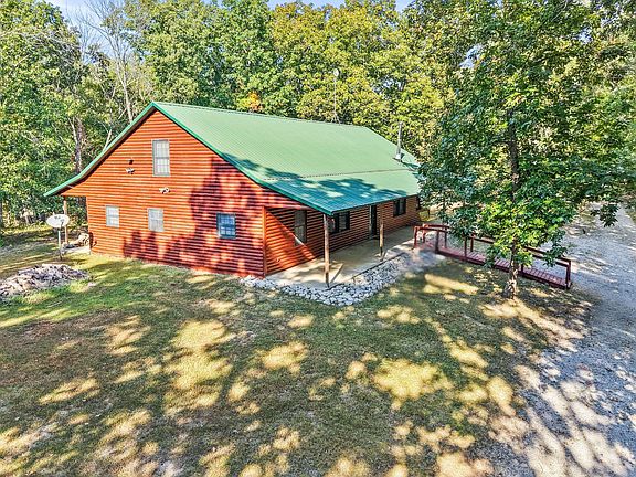 Price reduced $10,000!! Escape to the peace and quiet serenity of the country with this charming log home with 3 bedroom, 2 baths a detached garage and nestled on 5+ partially wooded acres and blacktop roads.. The property features a welcoming covered porches perfect for relaxing evenings, and a storm shelter conveniently located below the master bedroom for added peace of mind. Inside, the home boasts an inviting layout with a large upstairs bonus family room that can serve as a game room, media space, or extra room for guests. Whether you're looking for solitude, space for hobbies, or a place to host friends and family, this property offers it all in a beautiful country setting.Buyer to verify all data and measurements.