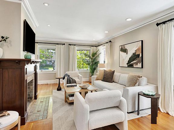 A magical Madison Heights Craftsman showcases architectural details, a massive eat-in kitchen and a stunning backyard with expansive deck, all tucked away on a quiet side street in one of Pasadena's most desirable neighborhoods. From the inviting curb appeal, enter through a pergola and grand door into the formal entry, where timeless Craftsman character immediately shines. Wide framed openings gracefully connect the elegant living room, large dining room, and sitting/media room, offering a sense of flow while preserving distinct spaces perfect for both entertaining and daily life. The elegant living room is filled with natural light and anchored by a decorative Batchelder-style tile fireplace with a rich wood mantle, while the sitting/media room opens through double doors to a living room-sized deck ideal for gatherings. The centerpiece of the home is the massive, custom-designed eat-in kitchen, boasting granite countertops, marble backsplash, custom cabinetry, under-cabinet lighting, Viking range with grill, wine cooler, TV, skylight, and porcelain tile floors. A large eating counter separates the food prep area from the bright breakfast area, with easy access to the backyard and a laundry closet. The main floor also includes a spacious bedroom with finely crafted built-in cabinets, and a full guest bath with tub. A wide, richly textured wood staircase leads upstairs to two architecturally detailed bedrooms and a period-style spa-like bath with a separate toilet room and bath/shower combo with rain shower. The expansive main bedroom stretches nearly the full width of the home and includes a dressing-room-sized closet and an 18-foot sunroom, ideal for a work-from-home space. The backyard is nothing short of enchanting, offering a sprawling deck with built-in benches, overhead trellis, custom lighting, and wide steps leading to open grassy areas and curated gardens featuring fruit trees and show-worthy roses - a true outdoor sanctuary. Modern amenities include forced air heat, dual-zone central air, seismically retrofitted foundation, large basement, and detached two-car garage. With its charming historic architecture, richly detailed interior spaces, magical backyard and proximity to the renowned Langham Huntington Hotel, Lake Ave District, Caltech, Arroyo Parkway shops (Trader Joes & Whole Foods), and the vibrancy of Old Town Pasadena, this is a once-in-a-generation opportunity to live the rarely available Madison Heights lifestyle in legendary Pasadena