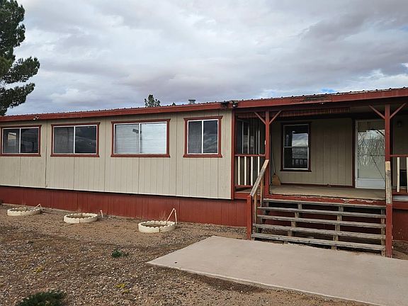 Located close to town, close to I-10. Nice ready to move in, has 2 other RV's converted to single bedroom areas. Has Metal Handicap ramp on back deck Work shop, carport and Garage, easy access to property. great scenic views call LB for Showings