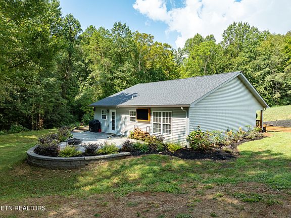 Immaculate with a one-of-a-kind setting! This 3BR/2BA ranch sits on over an acre of private, park-like private acreage, yet you're just minutes from the city, the hospital, and the Smoky Mountains — all with the benefit of county-only taxes. From the moment you arrive, the charm is undeniable: mature trees, a game day stamped concrete patio, a flagstone walkway, and a welcoming covered front porch.